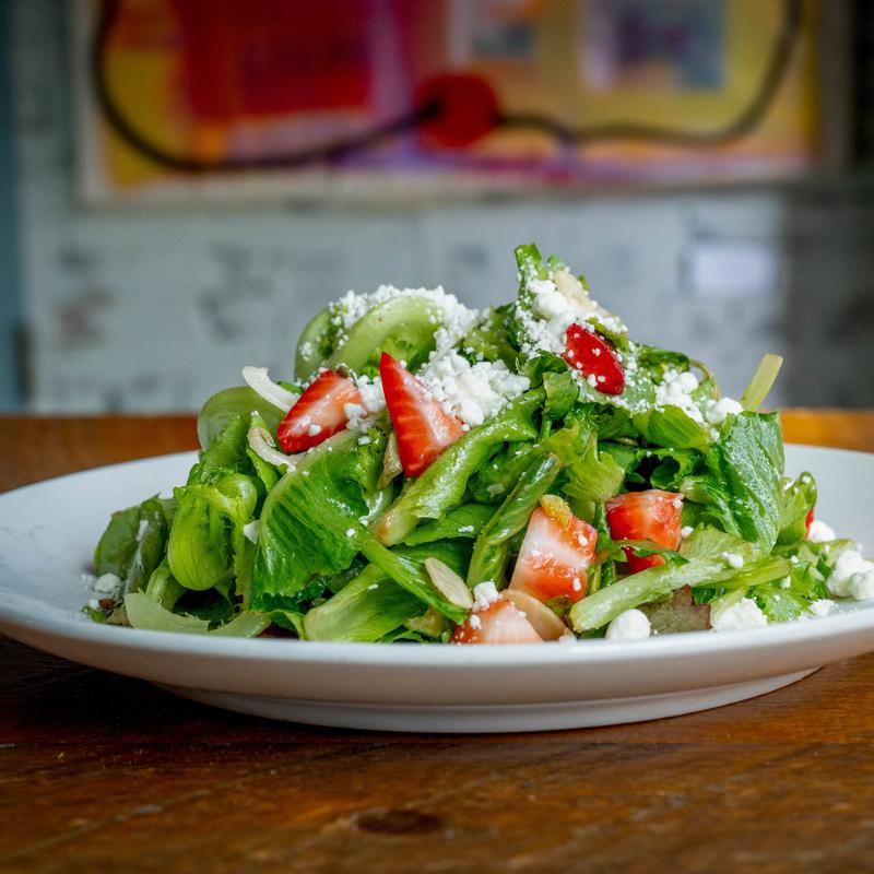 Great pizza and salad restaurant. That's mostly what we had so that's what Im commenting on. The salads were not the same old that most places have and the pizza/calzone was delicious. Drink choices were also good. No beer on tap but a nice selection. Will need to return for dinner. Pictures do not do justice to how tasty this all was. Also, we were surprising one of our guests and the staff was so great in helping us with this.